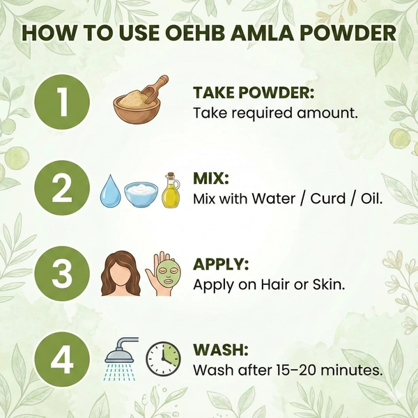 - Premium grade amla fruit powder: Farm-fresh amla fruits handpicked and shade dried, to preserve their full essence and nutritional value