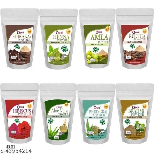 OEHB 8 In 1 Combo Amla,Reetha,Shikakai,Bhringraj,Hibiscus,Brahmi,Aloevera Leaf And Henna 400g Each-50g