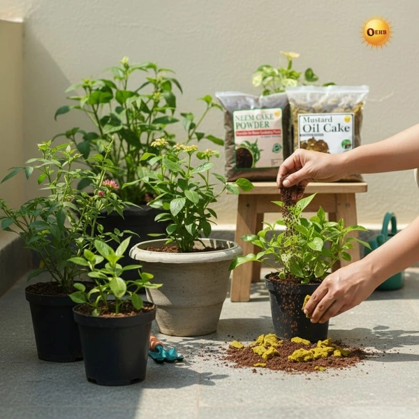 OEHB Organic Mustard Oil Cake & Neem Cake Powder – The Perfect Nutrient Duo for Your Home Garden